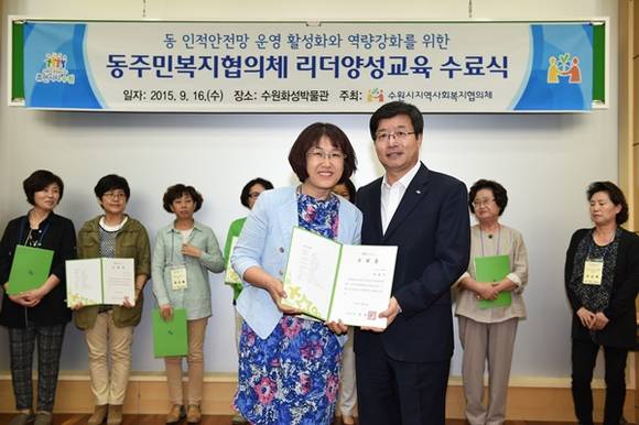 수원시는 지난 16일 수원시 화성박물관에서 동주민복지협의체 4차 리더양성교육을 마치고 수료식을 가졌다.