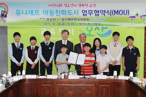 오산시 관계자는 “앞으로 유니세프와 협력체계를 강화하여 국내외 우수사례조사, 협의회 가입 지자체간 네트워크 형성 및 정보공유를 통한 다양한 정책 발굴 등 아동친화적인 지역시스템을 조기 구축하여 명실상부한 아동친화도시로 자리매김할 수 있도록 혼신의 노력을 다하겠다”고 밝혔다.