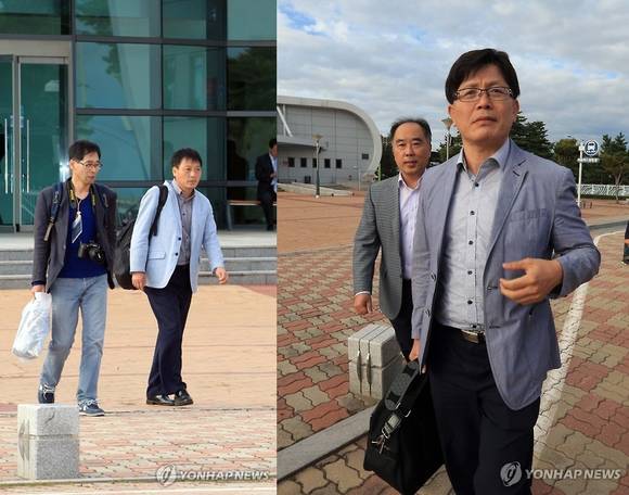 ▲금강산에서 열릴 예정인 이산가족 상봉행사를 앞두고 이산가족면회소 등 금강산 현지의 시설물을 점검하기 위해 지난 16일 방북했던 시설물 점검단이 17일 오후 동해선 남북출입사무소로 돌아오고 있다. (사진=연합뉴스)