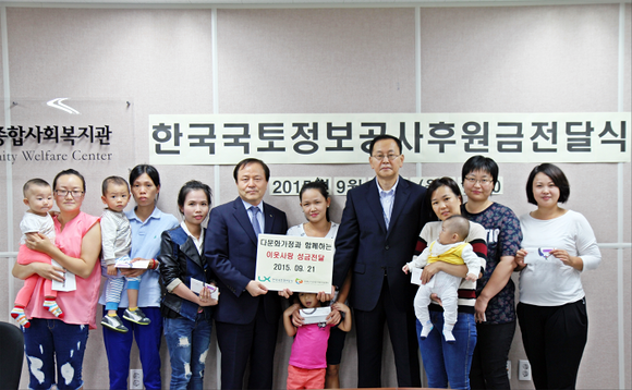 LX한국국토정보공사 부산울산지역본부(본부장 차득기)는 21일 부산 동래구다문화가족지원센터에 불우한 다문화가정 지원을 위한 후원금 200만원을 전달했다. (사진제공=LX공사 부울본부)