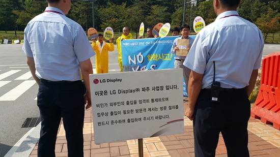 한편 이날 안소희 시의원과 화학물질감시네트워크 정책자문인 노동환경연구소 이윤근 부소장은 파주엘지디스플레이에 위에 언급한 고지를 요구하는 '요청서'를 전달하기 위해 담당자를 만나려 시도했으나 바깥 정문에서 제지를 당했다. 결국 엘지디스플레이 측 담당자 및 책임자가 한명도 나오지 않아 경비를 담당하는 직원에게 공식 요청서를 전달했다.