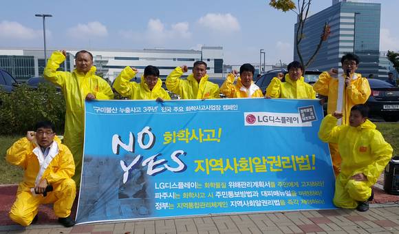 21일 파주시의회 안소희 시의원 및 화학물질감시네트워크, 파주비정규센터 등 관계자들은 엘지디스플레이 앞에서 '지역사회 알 권리법 제정 촉구' 기자회견을 열고 엘지디스플레이가 지역주민들의 건강과 생명을 위해 사고대비물질별 '위해관리계획서'를 지역사회에 고지하라'고 촉구했다. 지역주민 건강과 생명을 위한 알 권리를 보장해 달라는 내용이다.