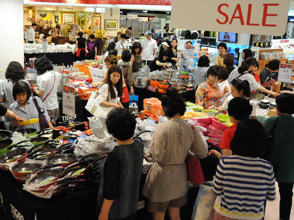 ▲코리아 그랜드 세일에 맞춰 부산지역 롯데백화점도 추석을 사이에 두고 세일을 진행한다. 사진은 지난 여름 세일 첫 날 모습. (사진제공=롯데백화점)