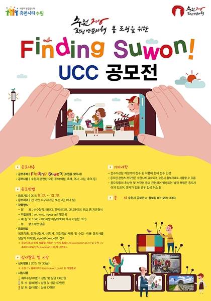 수원의 다양한 매력적인 모습을 찾아 달라는 의미로 진행되는 수원을 찾아서 UCC 공모전은 여행, 축제, 역사, 사람, 추억 등 수원과 관련된 모든 것을 주제로 공모할 수 있다. 공모전은 23일부터 10월 25일까지 대한민국 국민 누구나 개인 또는 4명 이하 팀으로 참여할 수 있다.