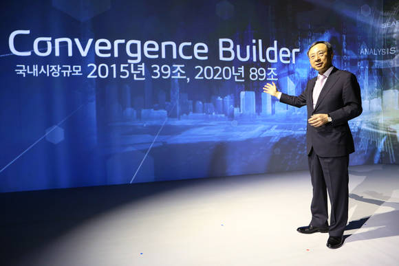 ▲황창규 회장이 ICT 융합기술로 4차 산업혁명을 한국이 주도하게 만들겠다는 포부를 밝히고 있다. (사진제공=KT)