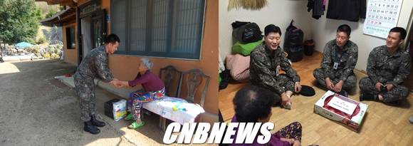 지난 22일 과학화전투훈련단 정작처장(중령 김재규)은 상남면 상남리에 거주하는 독거노인 7명의 집을 방문해 막걸리와 라면, 휴지 등 가구당 2만 원 상당의 위문품을 전달했다. 또 과훈단 전문대항군 연대 제13보병대대(대대장 김용섭)는 상남리 독거노인 2가구를 방문해 인제사랑 상품권과 사과 한 상자 씩을 전하며 위문했다. 이처럼 인제 관내 군부대에서는 어려운 이웃들에게 사랑 나눔 활동을 꾸준히 하고 있다.