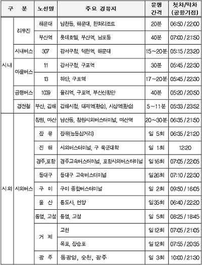 ▲23일 현재 김해공항 대중교통 현황. (표제공=공항공사 부산본부)