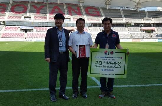 고양도시관리공사는 고양종합운동장이 전국 최고의 잔디 관리주체에게 수여하는 현대오일뱅크 K리그 챌린지 2015 2차 ‘그린 스타디움(Green Stadium)상’을 수상했다고 21일 밝혔다.