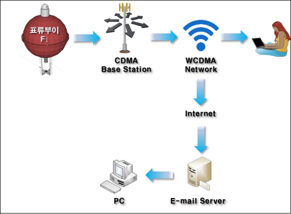 따라서, 선박에서 직접 관측하는 기존 조사방법에 비해, 본 부이는 기상여건에 영향을 받지 않고 오염물질 이동경로 등을 관측할 수 있어, 사용자가 편하고 신속하게 정보를 확인할 수 있다.