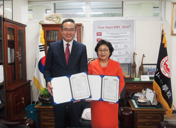 ▲(왼쪽부터) 부산정보산업진흥원 서태건 원장, 동부산대 류경화 총장. (사진제공=부산정보산업진흥원)