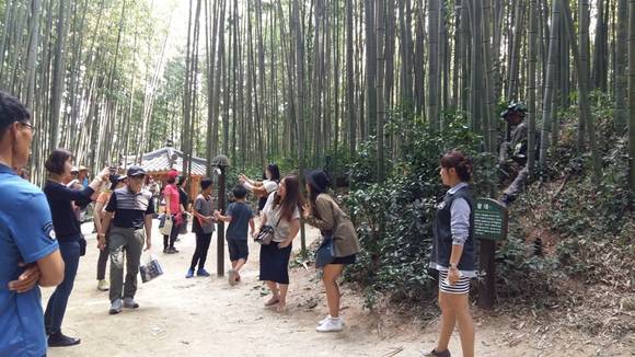 ▲2015담양세계대나무박람회의 주제체험관인 죽녹원 내 영화 ‘알포인트’ 촬영지에서 관람객들이 기념촬영을 하고 있다(사진=대나무박람회조직위)