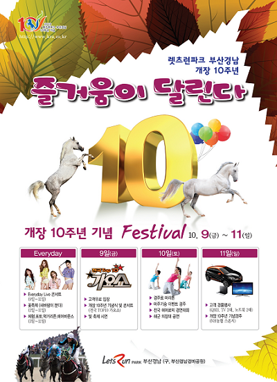 이렇게 지난 10년 동안 부·경 시민들의 곁에서 함께했던 렛츠런파크 부경의 개장 10주년 행사가 오는 10월 9일부터 11일까지 렛츠런파크 부경에서 펼쳐진다.