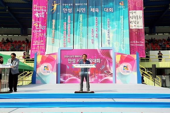 황은성 안성시장은 “오늘 시민체육대회가 안성인의 드높은 기상과 패기를 드높이고 우리에게 큰 화합의 에너지가 되었길 바란다며 오는 7일 개최되는 안성맞춤남사당바우덕이축제와 경기정원문화박람회에도 시민분들의 많은 관심과 참려를 바란다”고 말했다.