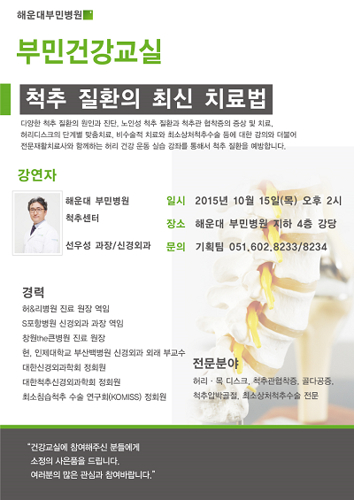 해운대부민병원, 15일 '척추 질환' 건강교실 개최