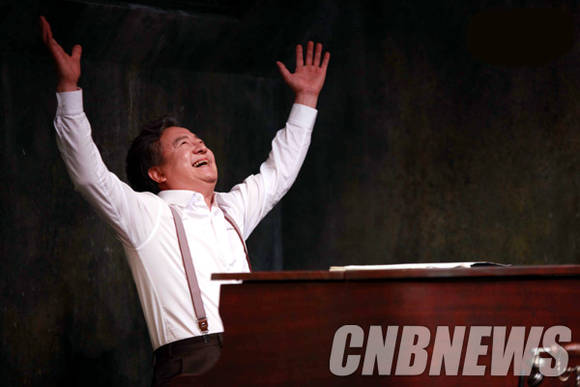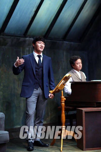 ▲천재적 재능으로 주목받았지만 자신만의 세계에 갇힌 피아니스트 역의 이창용(왼쪽)과 그를 지도하는 괴짜 교수 마슈칸 역의 송영창이 무대에서 호흡을 맞추고 있다.(사진=컬처마인)