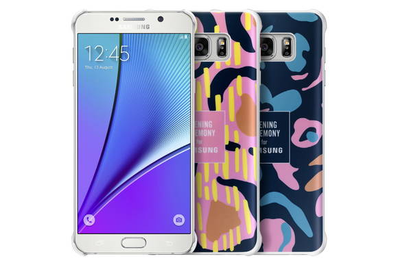 ‘오프닝 세레모니(Opening Ceremony)’는 미국 뉴욕의 유명 편집매장으로 출발해 세계적으로 인기를 모으고 있는 패션 브랜드로, 갤럭시 노트5와 갤럭시 S6 엣지+ 특유의 커브드 디자인을 담아내고 오프닝 세레모니의 2016 봄 컬렉션 패턴을 활용해 개성 있는 디자인의 스타일리시한 커버와 배터리팩을 완성했다.