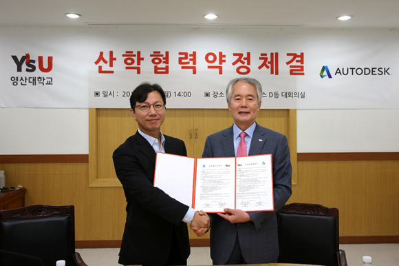 영산대학교(총장 부구욱)는 12일 오후 해운대캠퍼스 D동 3층 대회의실에서 ㈜오토데스크코리아(이사 김일혁)와 상용게임 개발 위탁을 비롯해, 교육과정과 교재를 공동 개발해 전공 커리큘럼에 반영하고, 정부 R&D 개발과정도 함께 진행하는 등 상호 윈윈(Win-Win)할 수 있는 프로그램을 실현하기 위해 산학협력 약정을 체결했다.