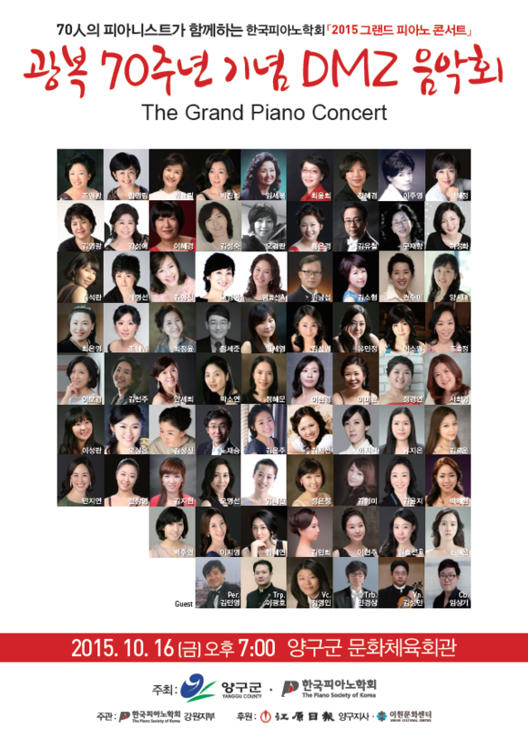 양구군이 광복 70주년을 맞아 경축 분위기 확산과 군민들에게 문화공연을 향유할 수 있는 기회를 제공하고자 16일 저녁 7시 양구 문화체육회관에서 그랜드피아노 콘서트를 마련한다.