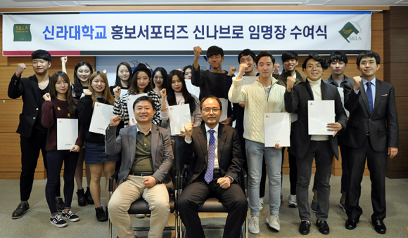 신라대학교(총장 박태학)는 16일 오후 5시 대학본부 3층 회의실에서 홍보서포터즈 '신나브로' 임명장 수여식을 개최했다.