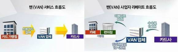 통상 가맹점에서 카드를 결제하면, 카드사는 해당 매장에 대금을 지급하고 수수료를 받는다. 이 과정에 밴사가 끼어 있다. 밴사는 고객이 결제를 취소하거나 서명 위조 등 사고가 발생할 경우를 대비해 고객이 서명한 영수증을 수집해 이를 카드사에 제출해 전표 수거료를 받는다. 또 결제 통신망과 단말기를 보급한다. 매장과 카드사를 연결해주는 일종의 ‘중간유통상’인 셈이다.