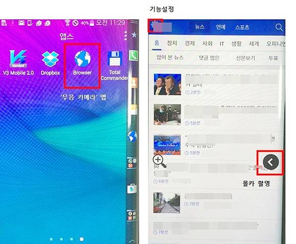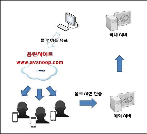 프로그래머 이모(28세, 남, IT회사 재직)씨는 스마트폰으로 뉴스를 검색하면서 동시에 무음으로 사진을 촬영할 수 있는 앱을 개발한 후 음란사이트를 통해 유포하였고 음란사이트 게시판을 통해 알게 된 32명은 이 어플리케이션을 통해 대중교통과 길거리에서 여성의 다리 등을 촬영한 혐의를 받고 있다.