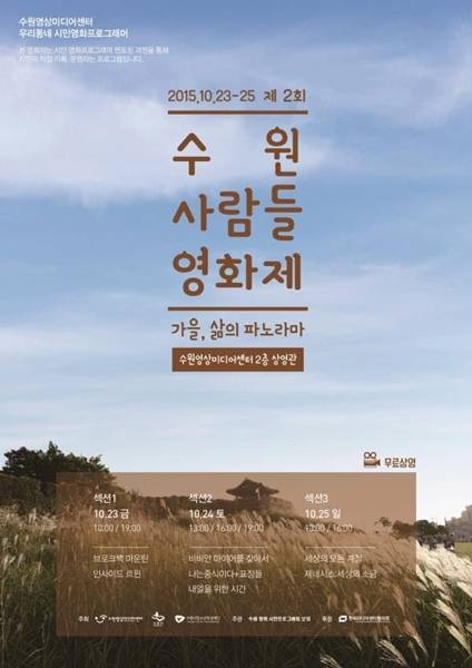 수원영상미디어센터에서는 오는 23일부터 25일까지 센터 2층 마을극장에서 2015 하반기기획전 제2회 수원사람들 영화제를 개최한다.