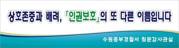 수원중부경찰서(서장 류영만)은 인권 보호 의식 함양과 인권 존중 문화 정착을 유도하기 위해 경찰서 수사부서 및 지구대․파출소 등 총 11개소에 인권 보호 메시지를 담은 게시물을 설치했다.