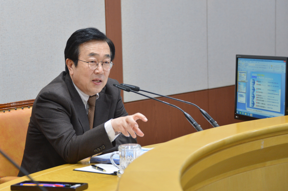 ▲서병수 부산시장이 21일 열린 부산시 산하 사업소 경영혁신 보고회에서 발언하고 있다. (사진제공=부산시)