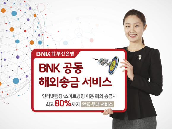 BNK금융그룹(회장 성세환) 부산은행이 인터넷뱅킹과 스마트뱅킹을 통해 해외로 송금하는 고객들의 편의를 높이기 위해 환율을 최고 80%까지 우대해주는 'BNK공동 해외송금 서비스'를 21일부터 실시한다.
