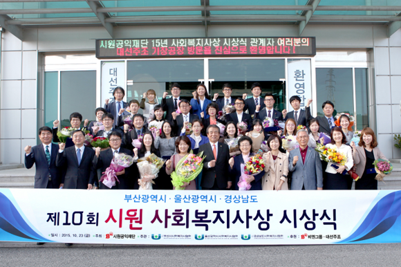 비엔그룹 시원공익재단(이사장 조성제, 현 부산상공회의소 회장)이 23일 오후 2시 대선주조 기장공장에서 '제10회 시원사회복지사상' 시상식을 가졌다.