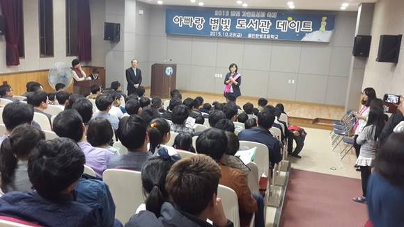 아빠와 함께하는 별빛도서관 데이트는 용인한빛초가 독서의 계절 가을을 맞아 지난 10월 19일부터 일주일간 2015 한빛 도서관 축제의 한 과정으로 총 120팀 240명의 학부모와 학생이 참여해 성황을 이뤘다.