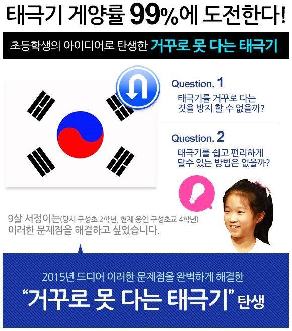 최근 문을 연 플랫폼사인 펀딩포유는 KBS ‘황금의 펜타곤’에 소개된 김서정(11) 어린이의 발명품 ‘거꾸로 못다는 태극기’를 펀딩 상품으로 소개해 눈길을 끌고 있다.