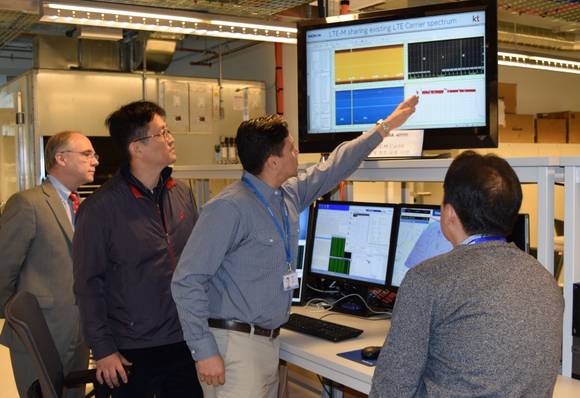 ▲KT와 노키아 직원들이 소물인터넷의 커버리지를 최대 3배 확장할 수 있는 LTE-M 기술을 테스트하고 있다. (사진제공=KT)