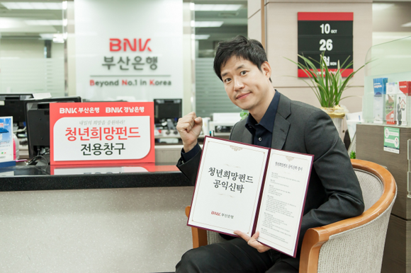 BNK금융그룹(회장 성세환) 부산은행은 지난 26일 오후, 배우 유준상이 부산은행 서울영업부(서울 중구 을지로 소재)를 방문해 '청년 일자리 창출'을 위해 기부금을 모으는 '청년희망펀드 공익신탁'에 가입했다고 27일 밝혔다.
