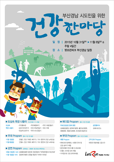 렛츠런파크 부산경남(본부장 고중환)은 오는 31일부터 11월 8일까지 주말 4일 동안 건강 축제인 '부산경남 시도민을 위한 건강한마당'을 개최한다고 29일 밝혔다.