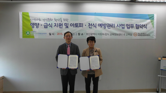 부산광역시 아토피·천식 교육정보센터(센터장 김희규)는 최근 부산 중서영도구 어린이급식관리지원센터(센터장 이정숙)와 지역사회 협력체계 구축을 위한 업무협약(MOU)을 체결했다고 29일 밝혔다.