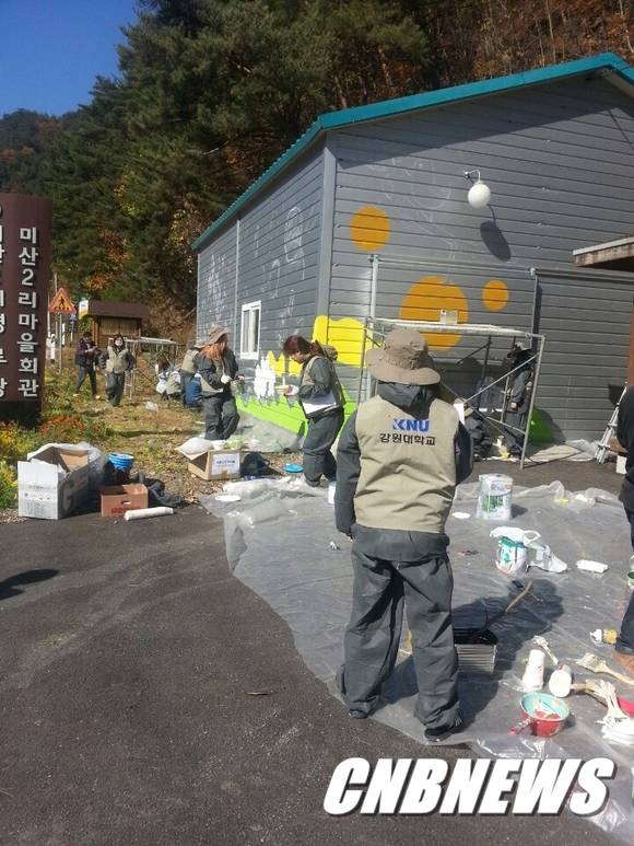 강원대 자원봉사단은 29일 상남면사무소와 상남 1리 노인회관에서 상남면민, 인근 지역주민을 대상으로 의료봉사, 벽화 그리기, 스포츠 마사지, 장수사진 촬영, 집수리 봉사 및 가축진료 등의 봉사활동을 펼쳤다. 이번 봉사활동에는 강원대 교수와 학생, 직원, 전문의 등 133명이 참여했다. 이날 봉사활동은 지난 4월 9일 강원대 병원 의료봉사팀의 무료진료가 계기가 돼 의료봉사뿐만 아니라 다양한 분야에서 이뤄졌다.