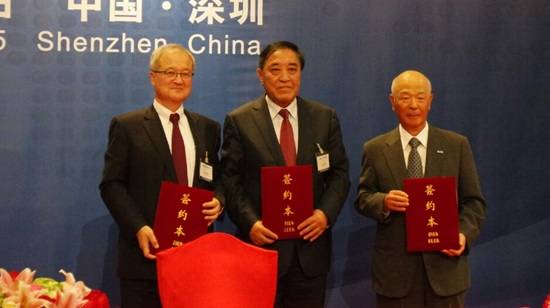 ▲(왼쪽부터)한국섬유산업연합회 성기학회장, 중국방직공업연합회 왕티엔카이 회장, 일본섬유산업연맹 시모무라 아키카즈 회장이 협력회의 후 기념촬영하고 있다.(사진= 섬유산업연합회)