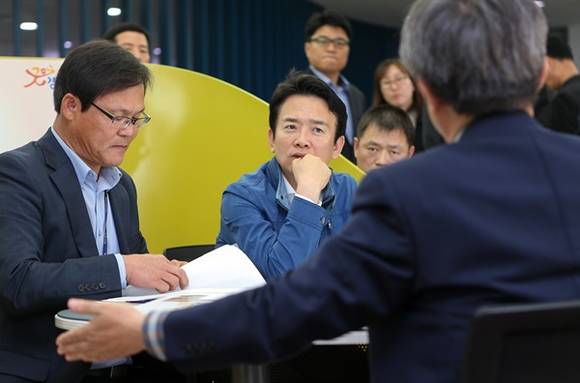▲6일 오전 경기도청 언제나 민원실에서 남경필 경기도지사가 도민의 고충을 직접 듣고 해결방안을 모색하고 있다.남 지사는 이날 오전과 오후 본청과 북부청을 오가며 도민들의 민원을 경청하고 해결방안을 모색하는 등 분주한 일정을 소화 했다.(사진=경기도)