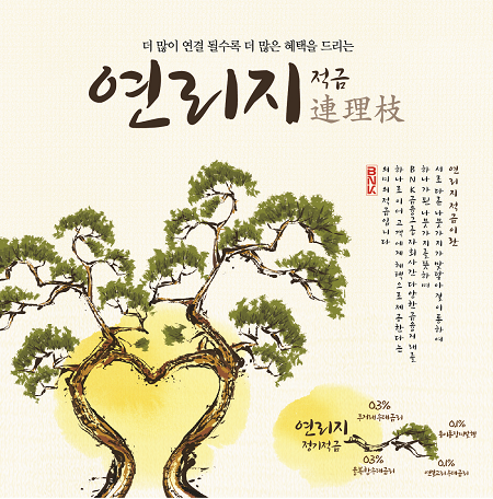 이 적금은 서로 다른 나뭇가지가 맞닿아 하나가 된 나무를 뜻하는 '연리지'란 이름처럼 BNK금융 각 계열사의 거래 실적을 하나로 통합해 추가 이율과 혜택을 제공하는 융복합 적금 상품이다.