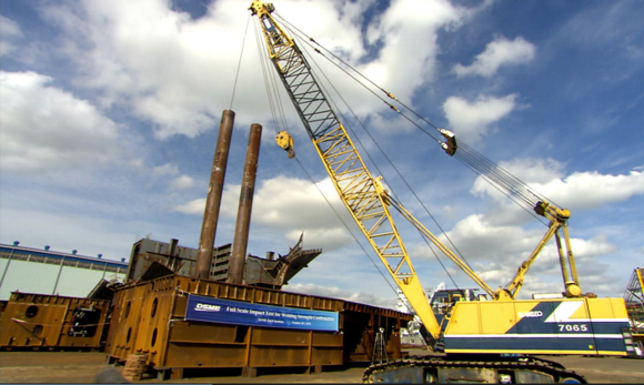 두께 2m를 넘는 얼음이 선박에 가하는 충격을 구현한 각각 1톤, 7톤 무게의 강철 추를 다양한 높이(1톤 : 5~7m, 7톤 : 1~2m)에서 떨어뜨린 결과, 용접 부위에서 균열이 발생하지 않아 선박 내구성이 입증됐다.