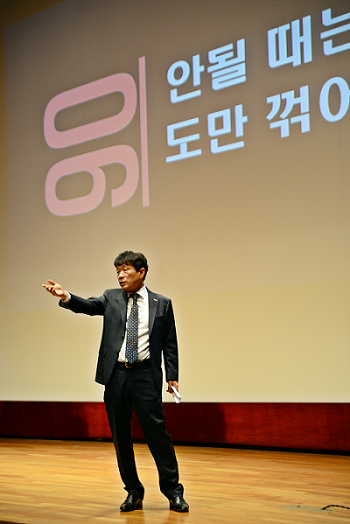 롯데백화점 광복점(점장 박영환)은 11일 부산지역 4개점포 점장들과 백화점 직원 300여명이 참여한 가운데 소통과 협력의 장인 파트너사 초청간담회를 진행, 대학생들이 만나고 싶어하는 경영인 3위에 선정된 천호식품 김영식 회장을 초대해 성공 스토리에 대한 강연을 가졌다. (사진제공=롯데백화점 광복점)