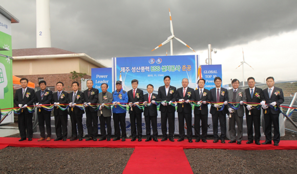 한국남부발전이 제주지역 최초로 상업용 풍력연계형 ESS 시스템을 구축하고, 11일 '성산풍력 2단계 연계형 ESS 준공식'을 가졌다.