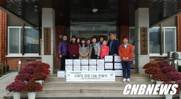 인제군 북면 용대초등학교(교장 김계림)는 12일 학생과 학부모 70여명이 참여해 직접 키운 친환경 배추로 담근 김장김치 22통을 지역 내 경로당에 전해 달라며 북면사무소에 기탁했다.