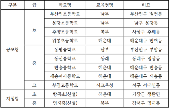 ▲2016학년도 '부산다행복학교' 명단. (표제공=부산시교육청)