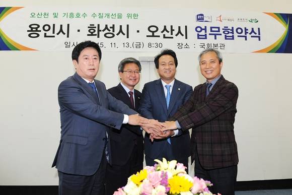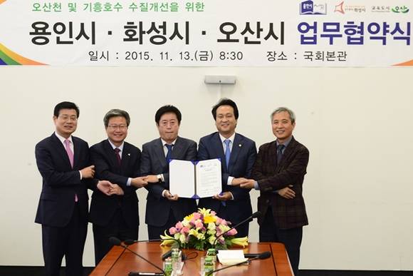 오산천 유역의 3개시(화성,오산,용인)는 지난 13일 오전 국회 본관 소회의실에서 오산천·기흥 저수지의 수질개선을 위한 업무협약을 체결했다.