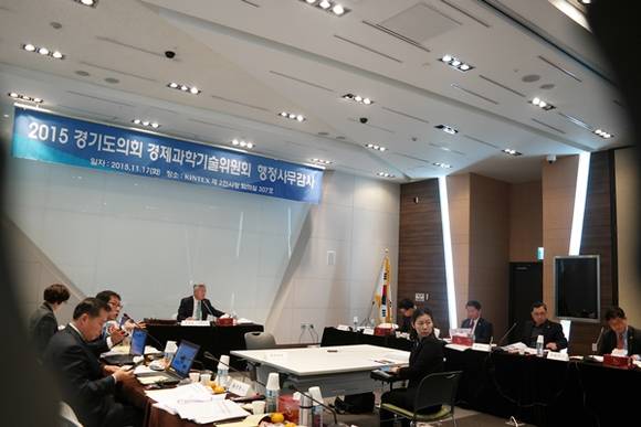 경기도의회 경제과학기술위원회(이동화위원장, 새누리당, 평택4)는 17일 킨텍스 회의실에서 킨텍스의 2015년도 행정사무감사를 실시했다.