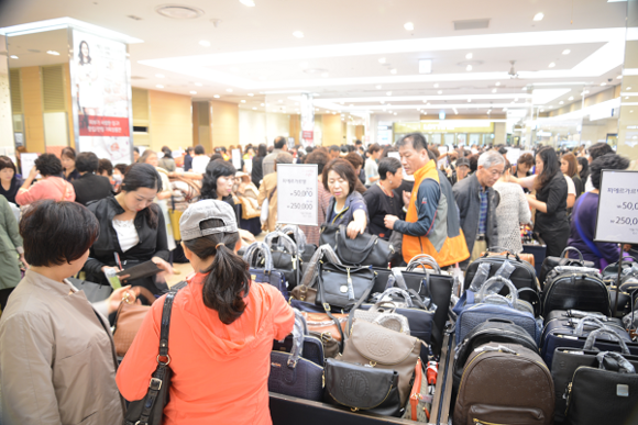 ▲지난 10월 '블랙프라이데이'를 맞아 롯데백화점 부산본점 지하 1층 행사장에서 쇼핑객들로 북적이고 있는 모습. (사진제공=롯데백화점)