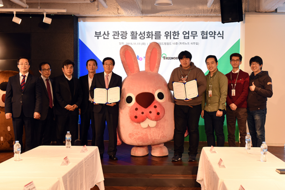 부산관광공사는 '포코팡' 게임 캐릭터로 국내외에서 큰 인기를 끌고 있는 ㈜트리노드와 17일 '부산관광 활성화'를 위한 업무협약을 가졌다.