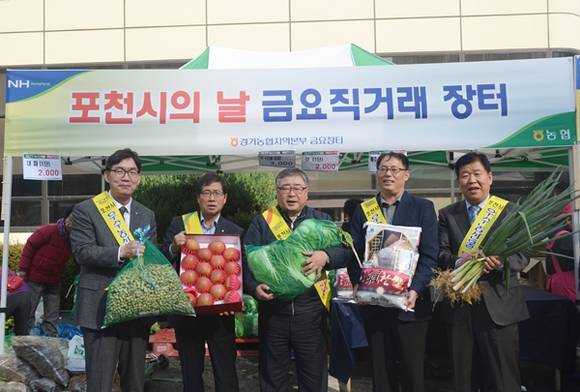 농협중앙회 경기지역본부(본부장 오경석)는 지난 20일 지역본부 금요장터에서 포천시 농축산물 직거래 특별장터를 열었다.